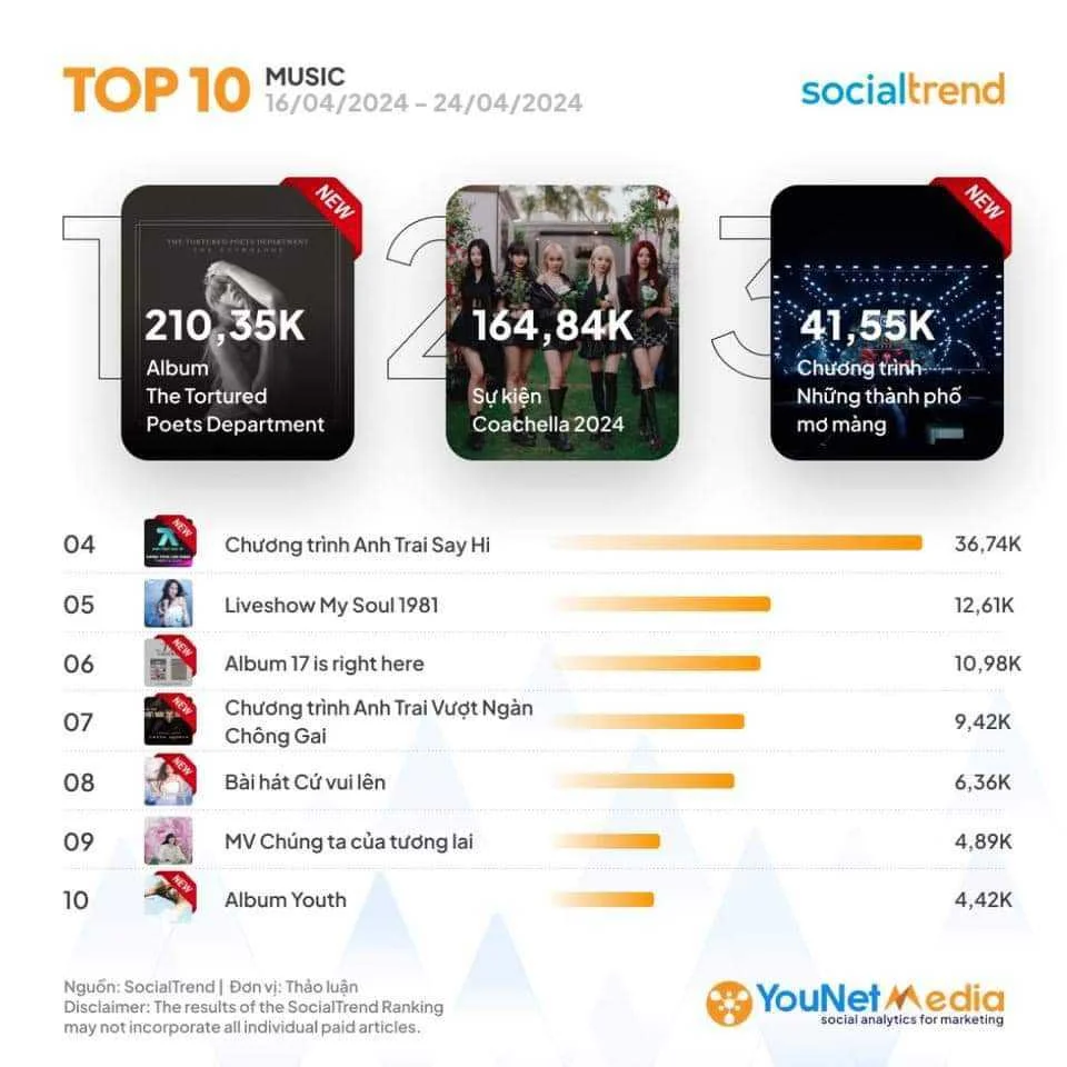 [ANH TRAI “SAY HI”] BÙNG NỔ MẠNG XÃ HỘI, LỌT TOP CHỦ ĐỀ ÂM NHẠC ĐƯỢC THẢO LUẬN NHIỀU NHẤT